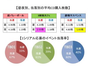アンケートについて (先日、ツイッターで募集させていただいたTBのリリースイベントの当落についてのアンケートに関してまずはご協力いただいた方々ありがとうございました。皆様のおかげで回答数200以上、総CD枚数1000枚越 […]